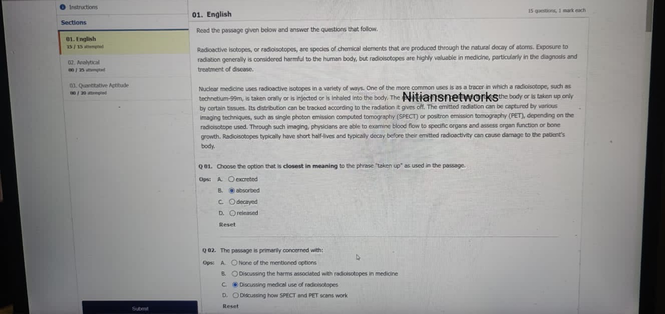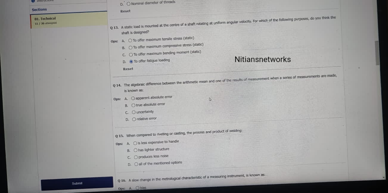 Paper 1: Technical Test: 30 Questions – 30 Mins (No Negative Marking; The Technical Test will appear as per the branch that the candidate has selected from the drop-down)